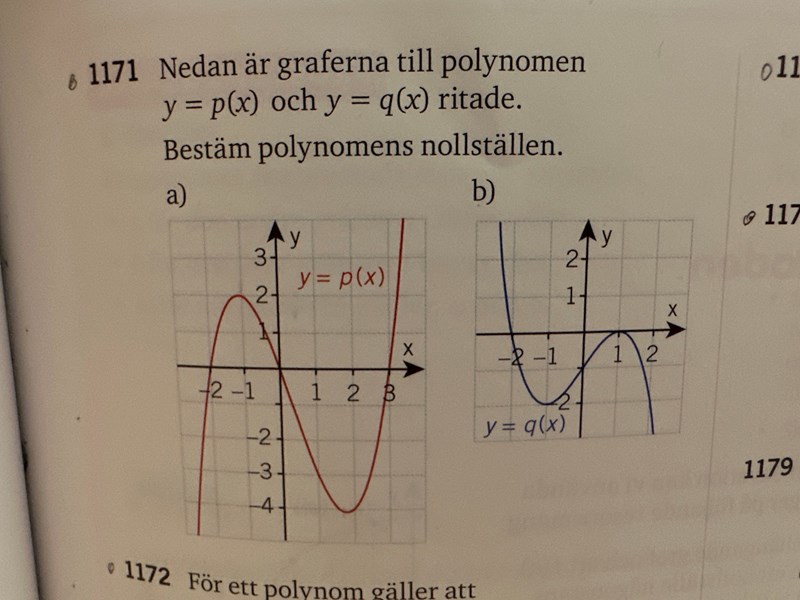 Ange polynomets nollställen.