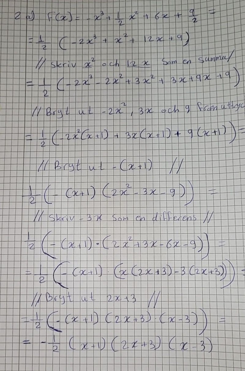 Jag försökte lösa uppgiften men fick fel svar. I frågan står det att svaret ska innehålla (3-x) som en faktor av fösrta grad. Min i mitt svar fick jag x-3 istället. Jag kunde inte hitta vart felet är