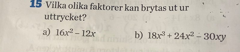 16x2 – 12x = 4(4x2 – 3x) = 4x( vad blir det kvar här? )