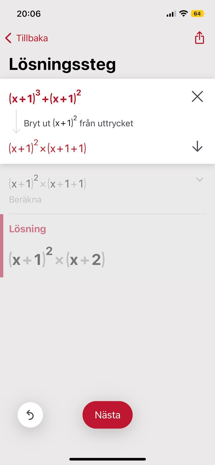 För den första termen så behöver vi multiplicera med (x+1) för att det ska bli (x+1)3