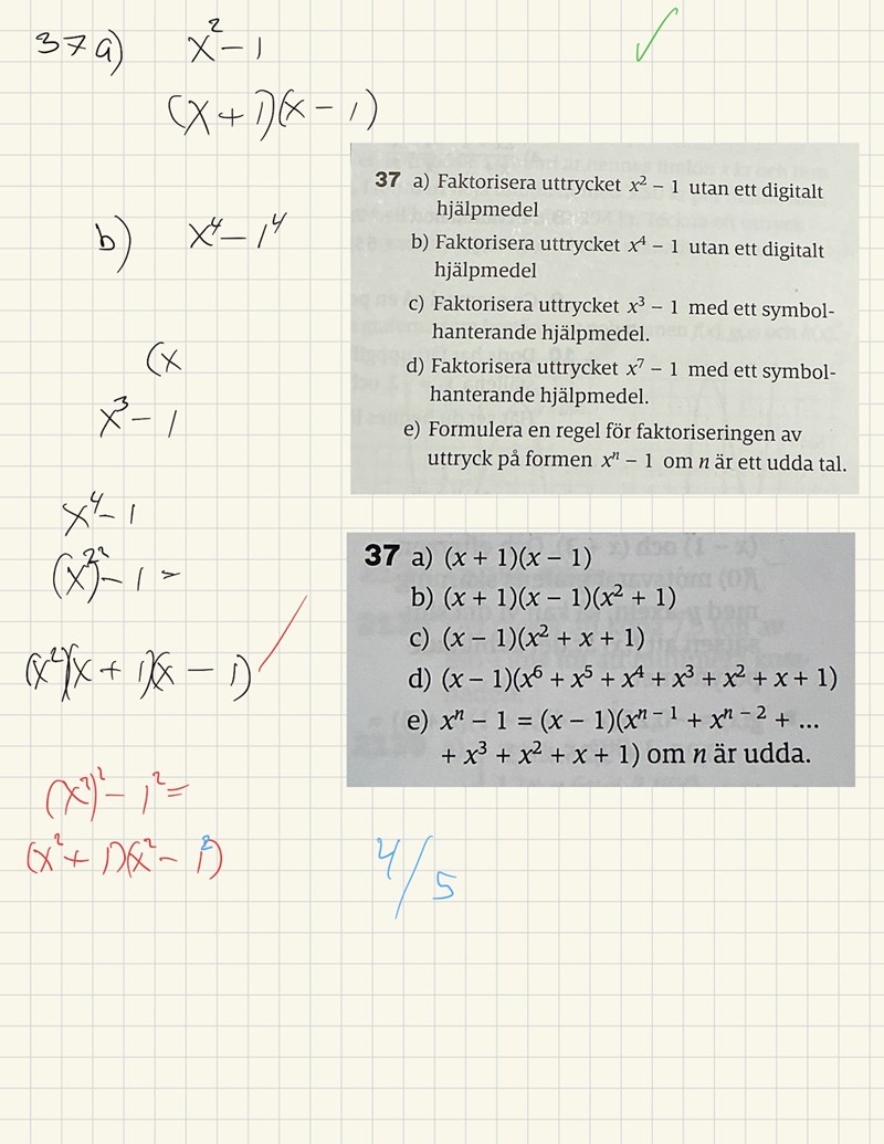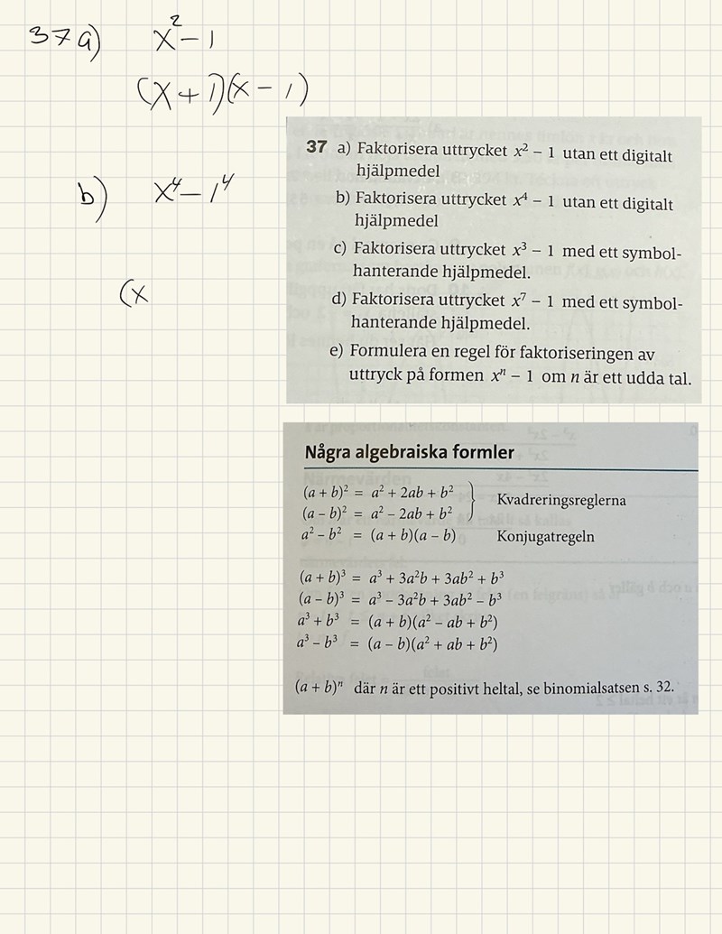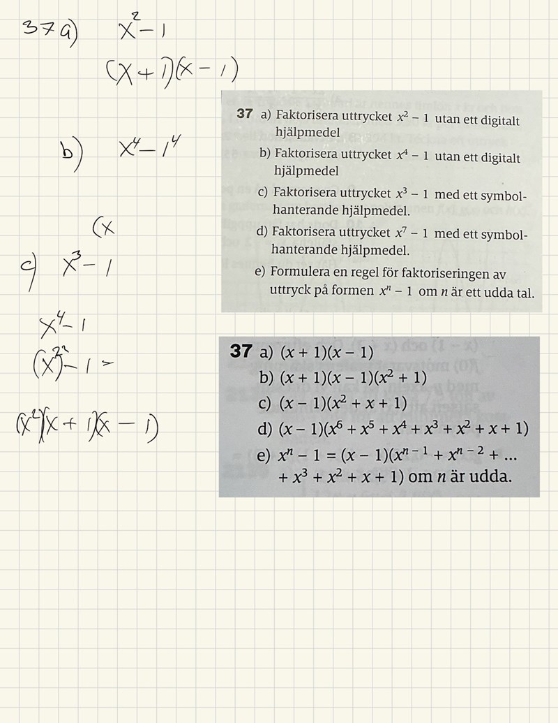 Faktorisera uttrycket x^4 -1 utan ett digitala medel