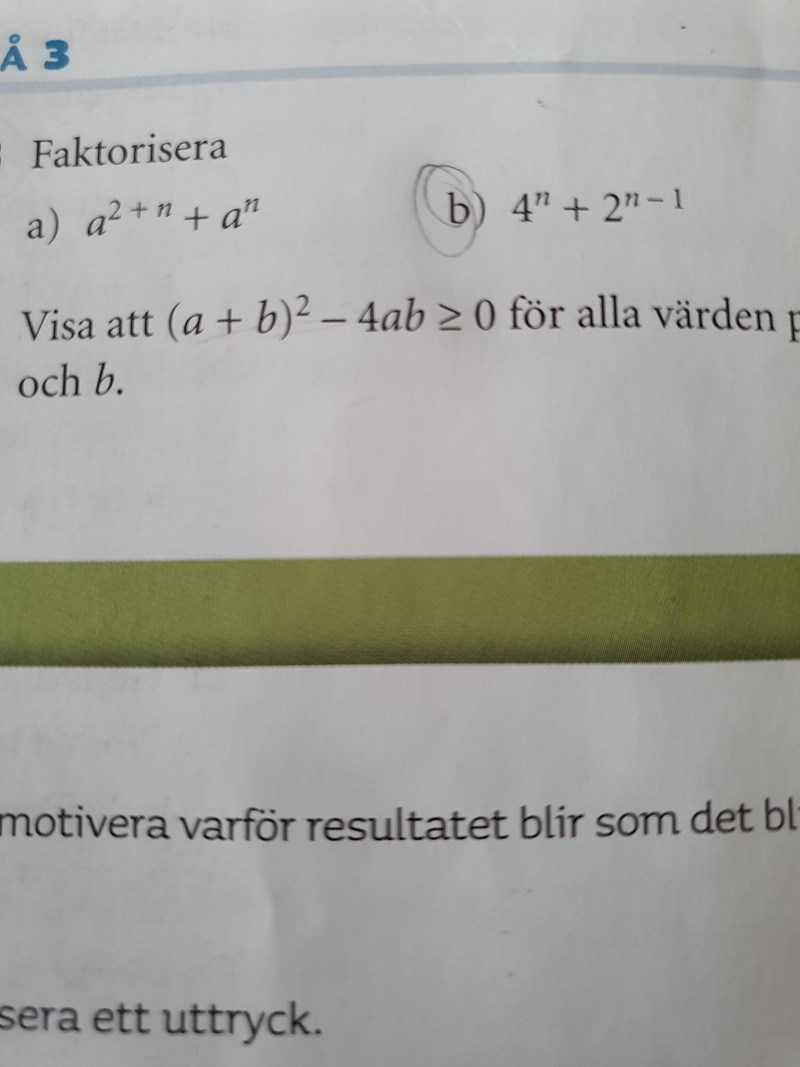 Jag försöker bryta ut den gemensamma faktorn 2^n, men i facit har de brutit ut 2^(n-1). Varför det?. Det gäller fråga b)