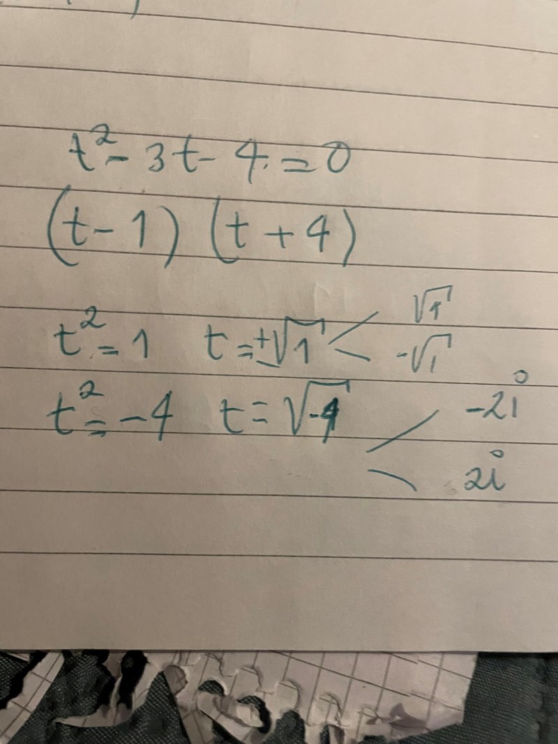 Hur löser du andragradsekvationen t2-3t-4 = 0?