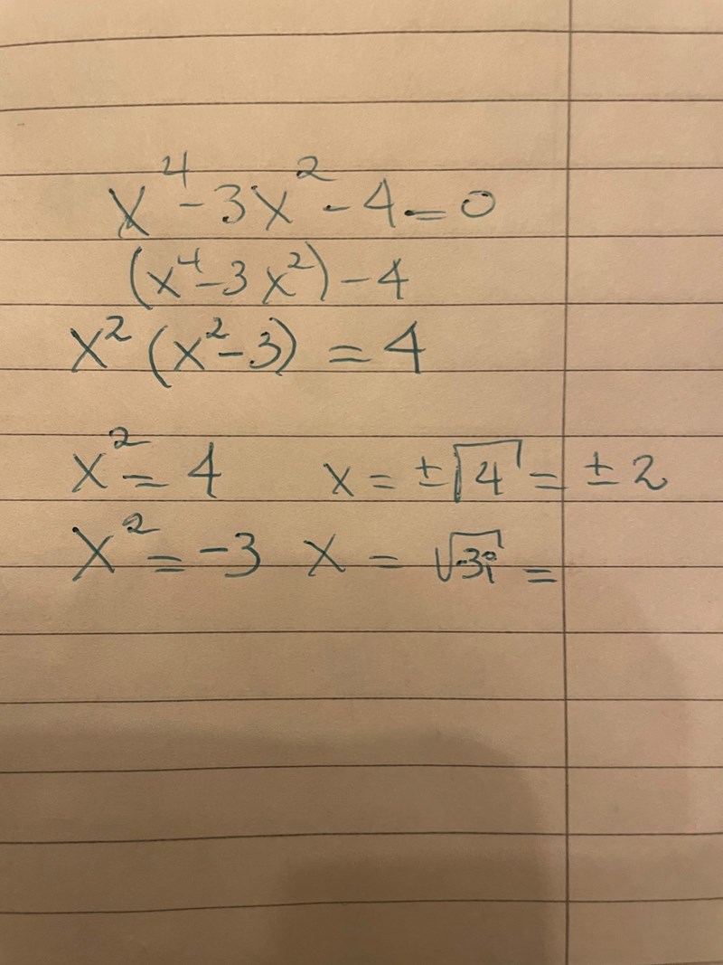 - Du kommer fram till att en möjlighet är x2 = 4 (oklart hur). Stämmer det med ursprungsekvationen?