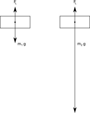 Fl är kraften från luftmotståndet. Den varierar ju med hastigheten men någonstans under fallet gäller detta sambandet. Och den är lika för båda.