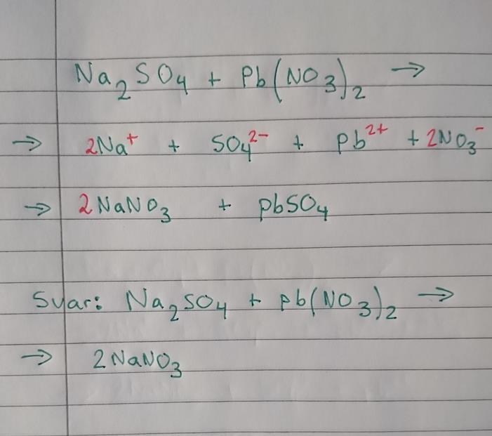 2Kl + Pb(NO3)2 --> PbI (s) + 2No3- (aq) + 2KI+ (aq)