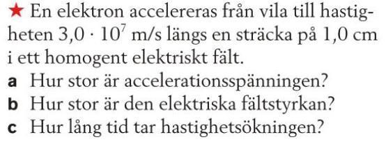 Eftersom accelerationen är konstant, skulle det ha tagit lika lång tid för elektronen att röra sig en cm med en hastighet som är lika med medelhastigheten (mellan starthastighet och sluthastighet).