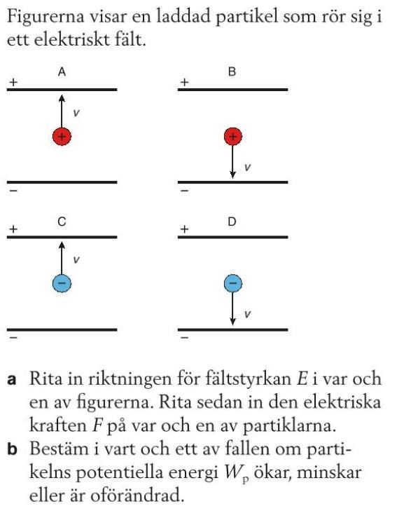 b) varför minskar den potentiella energi i C om partikelns elektriska kraft går mot + ?