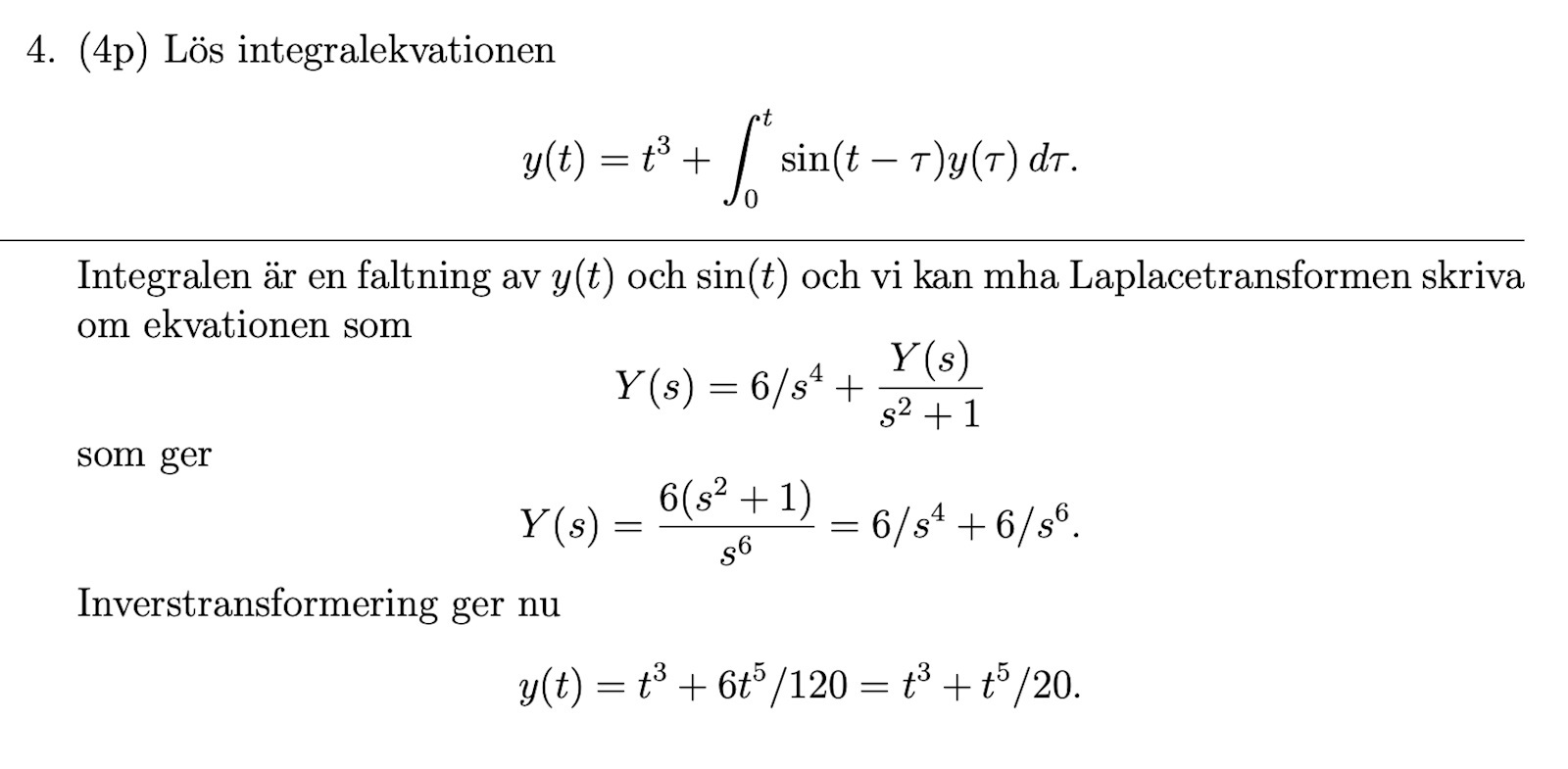 Ja, men hela integralen + t3 är ju lika med y(t), men jag vet ju varken eller y(t) (eftersom den innehåller y(τ))