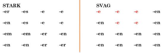 Ifall man endast skulle följa tabellen ovan skulle man tro att att mening (ii) istället skulle vara: