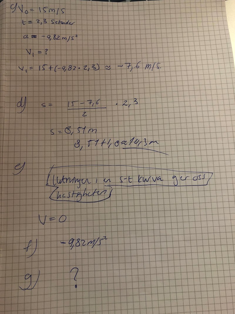 Örjan kastar en boll rakt upp med farten 15m/s: När bollen lämnar handen är den 1,8 över marken. Positiv riktning är uppåt.