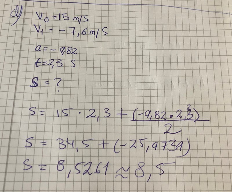 Jag kommer fram till att s= 8.5 m . Men det är inte rätt svar...Hur ska man tänka?