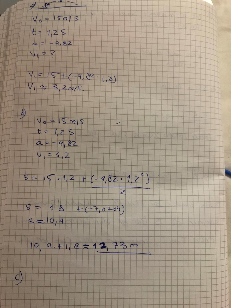 c) Vilken hastighet har bollen efter 2,3 s?