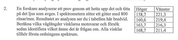 Om spektrometern hade varit perfekt justerad skulle centralmaximum ha varit på vinkeln 180o. Nu måste centralmaximum ligga mittemellan höger och vänster vinkel på samma rad. Kan du rita upp det då?