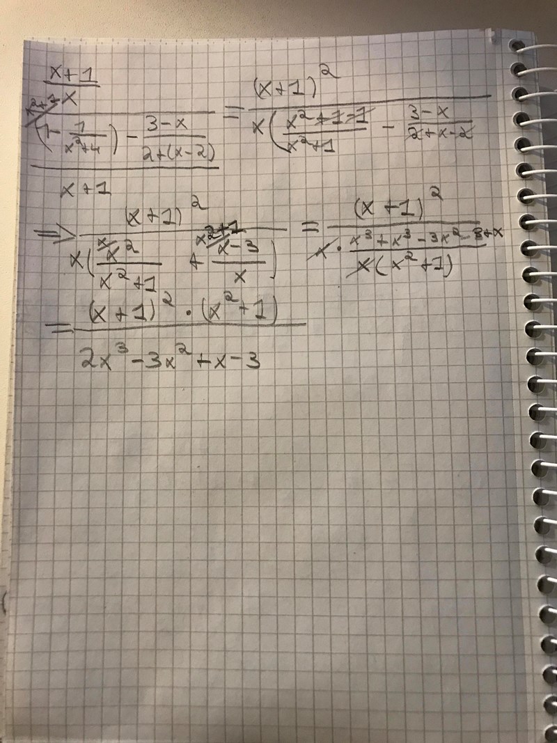Tänk på var parentesen tar slut efter första stora bråkstrecket. Detta är en differens mellan två bråk inte ett uttryck/uttryck/uttryck.