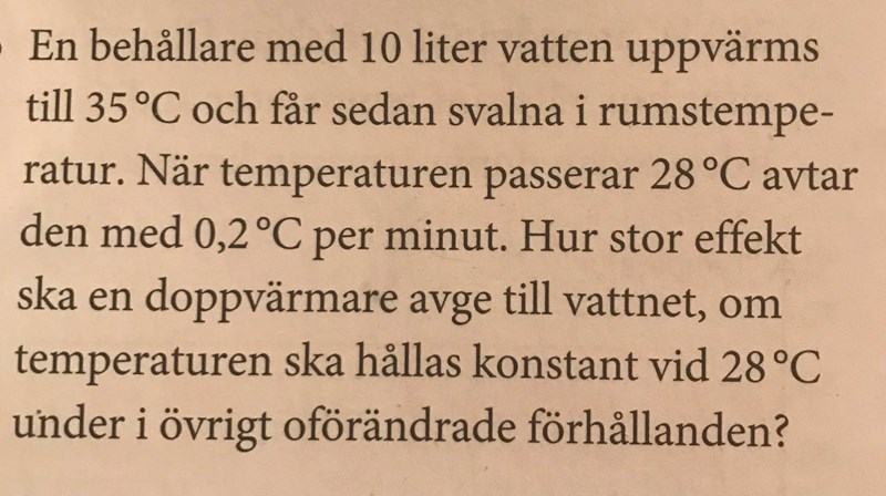Varje minut skall du tillsätta så mycket energi att det kompenserar för de 0,2 grader som det skulle ha kallnat annars.