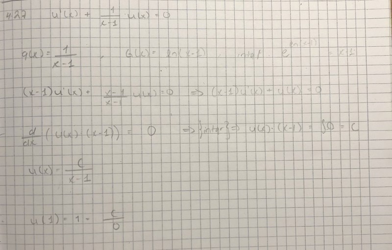 jag ska lösa (för x>0) med bivillkor u(1)=1 , och har gjort såhär: