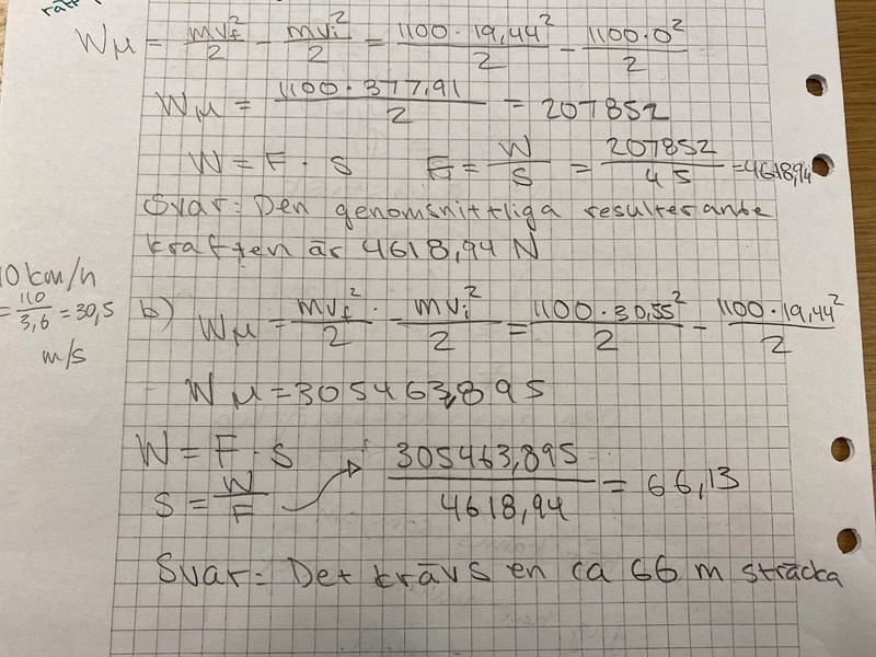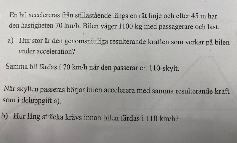 Men du har svarat med för många värdesiffror på a) och kanske ska du förtydliga att det handlar om 66 meter _extra_ i b. Bilen har ju redan färdats 45m i a).