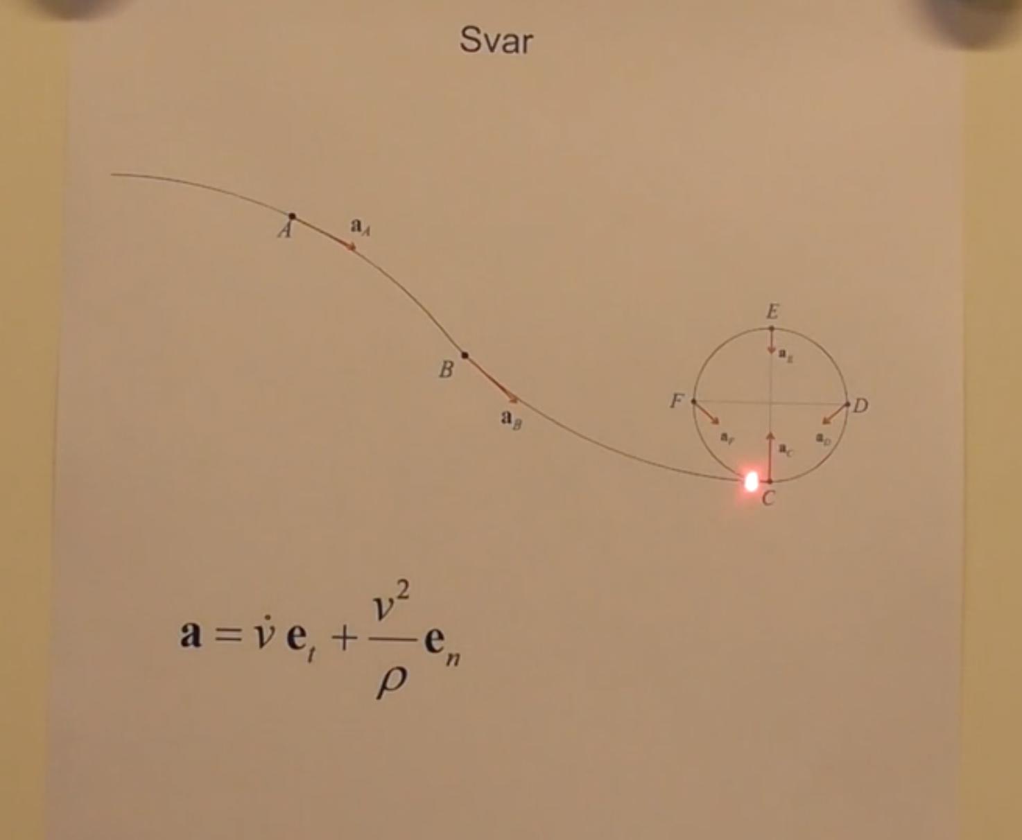 Uppgiften nedan var att rita ut accelerationsriktningar i punkterna A-F.