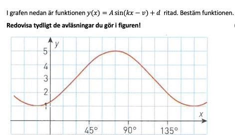 Det är ju så att om vi skall förskjuta med grader åt höger får vi byta ut mot . Det ger ekvationen vilket gör det tydligt att .