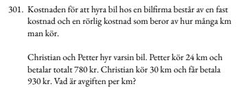 Så det jag gjorde med den här uppgiften var att ta kostnaden / km (780/24) men det blir fel.