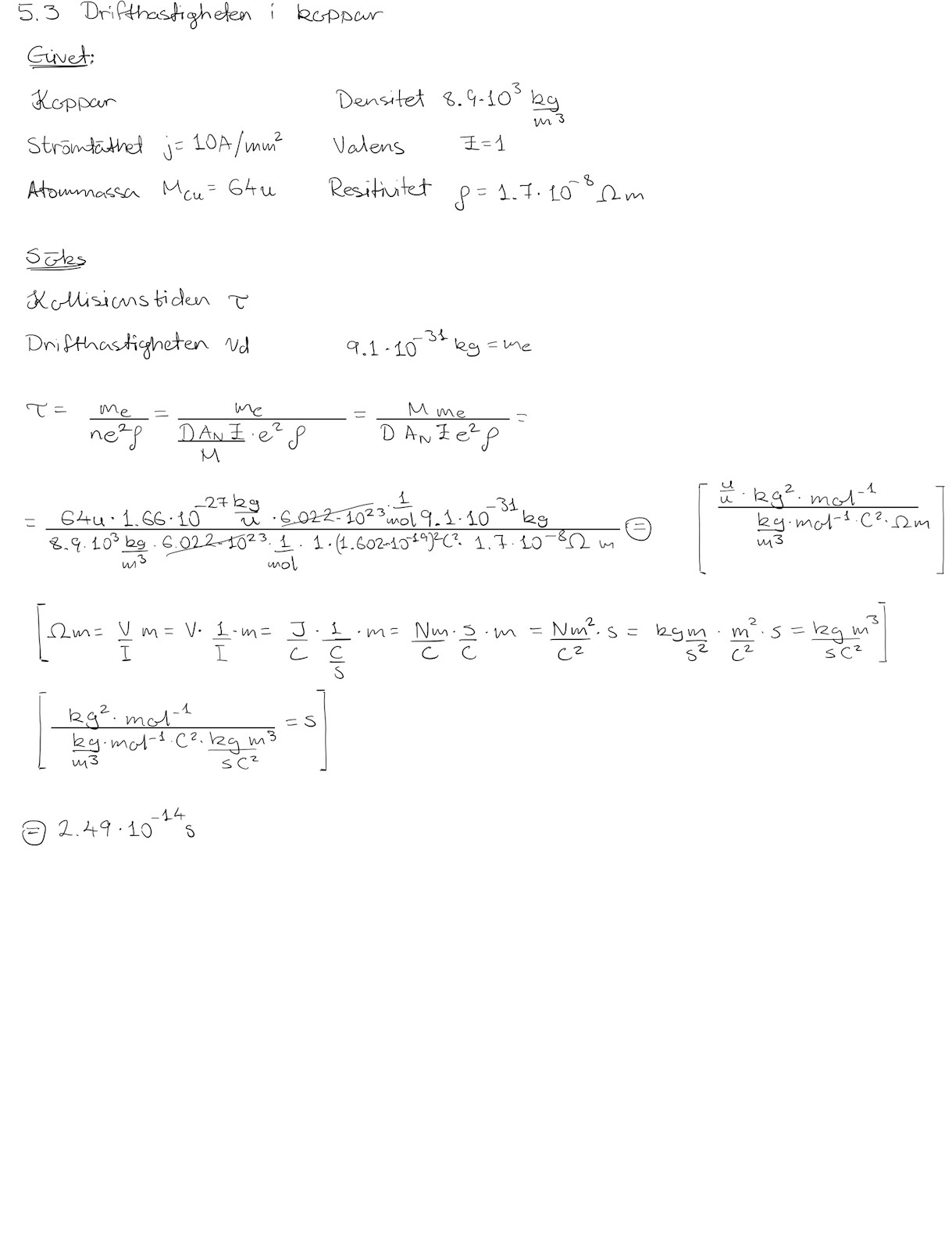 En annan fråga jag har är till den uppgiften jag har löst nedan. Ska det inte gå att göra på ett enklare sätt? Jag menar, bara att göra en enhetsanalys var en uppgift i sig.