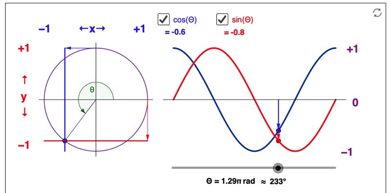 Den här sidan är bra för att utforska sambandet mellan sin och cos: