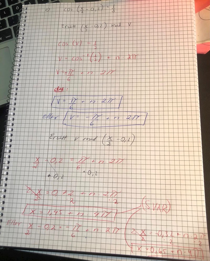 Det är ju inte cosv=1/2 du isf ska lösa, utan cosv=1/3