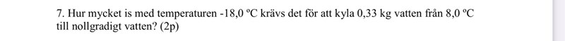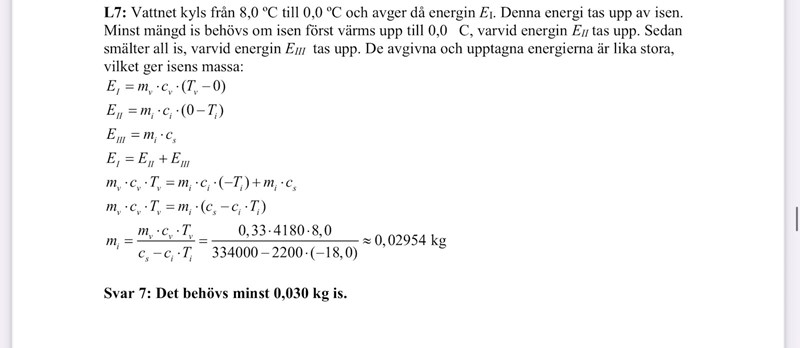 Nämnaren skall definitivt inte bli 334 000 +2 200, det skulle den bara bli om isen hade haft temperaturen -1 oC. Nu blir nämnaren 334 000+18.2 200.
