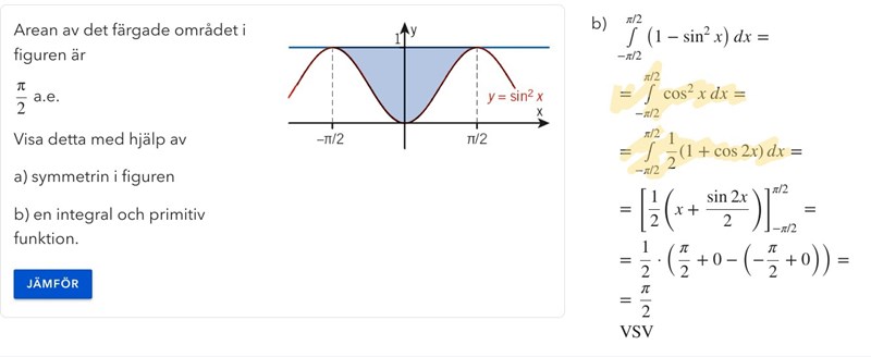 Eftersom man här inte använder den korta versionen (1+ cos(2x))/2