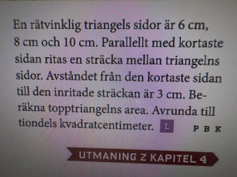 än så länge har jag bara ritat en rätvinklig triangel och satt ut måtten. Det jag förstår minst är andra meningen