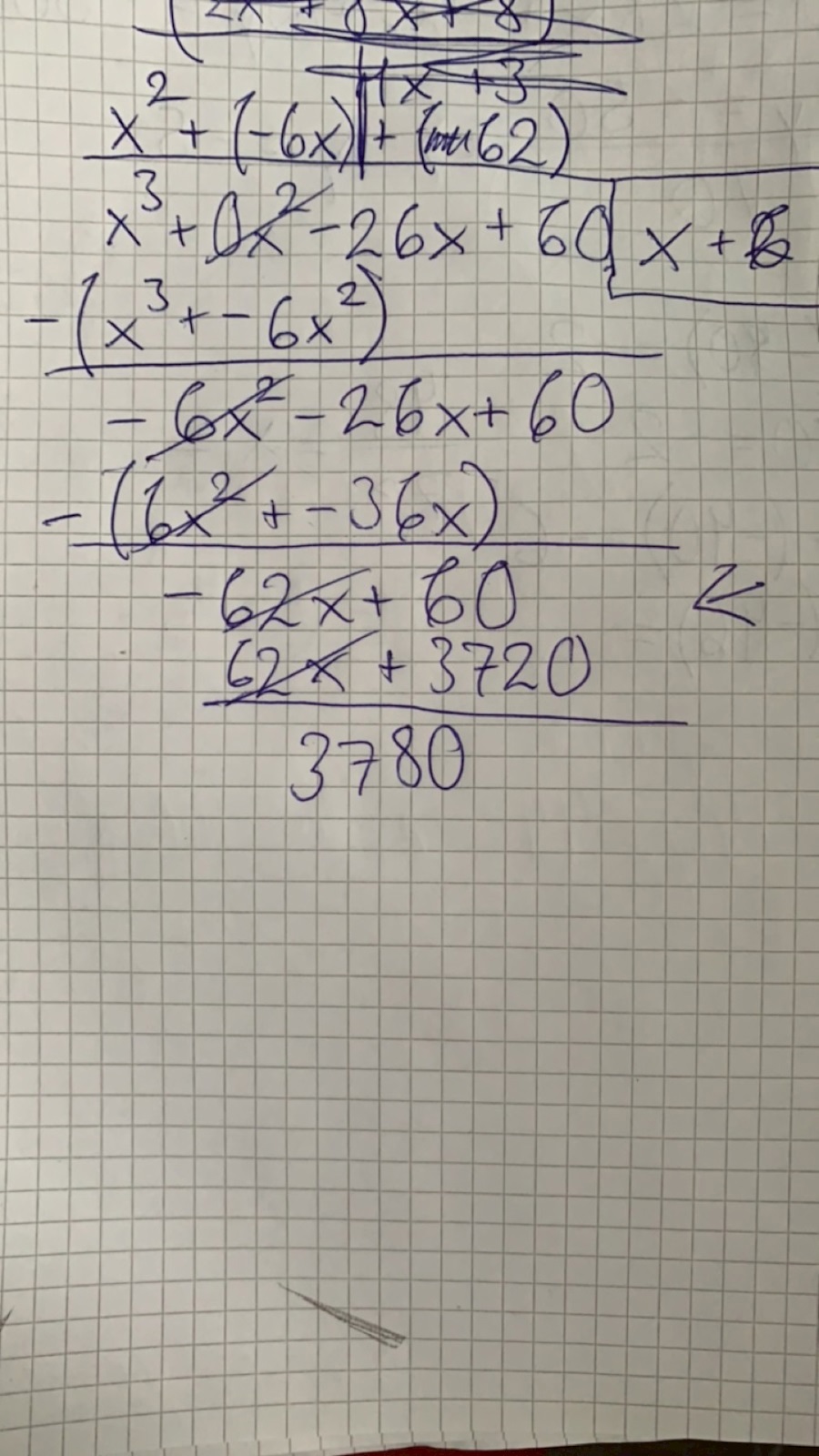 Är det x+2 eller x+6 du delar med? Om uppgiften är välformulerad skall det gå jämnt ut på slutet.