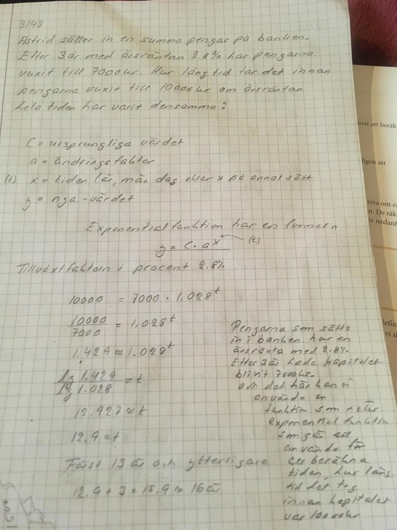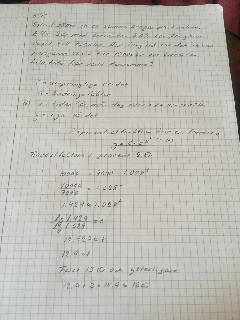 Vi undrar nu hur lång tid det tar innan saldot har ökat till kronor, dvs vilket värde på som gör att .