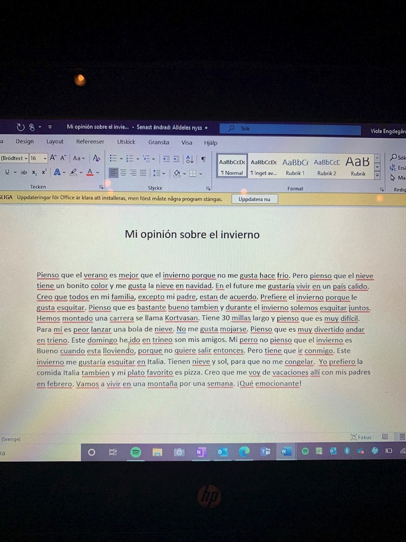 Hej! Jag har skrivit en text om bland annant mina åsikter kring vintern. Finns det någon som skulle vilja ge mig lite feedback innan inlämning? Tack på förhand