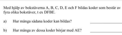 Det står fyra olika bokstöver i uppgiften. Säg att den första är A, då har du BCDEF att välja på för den andra.