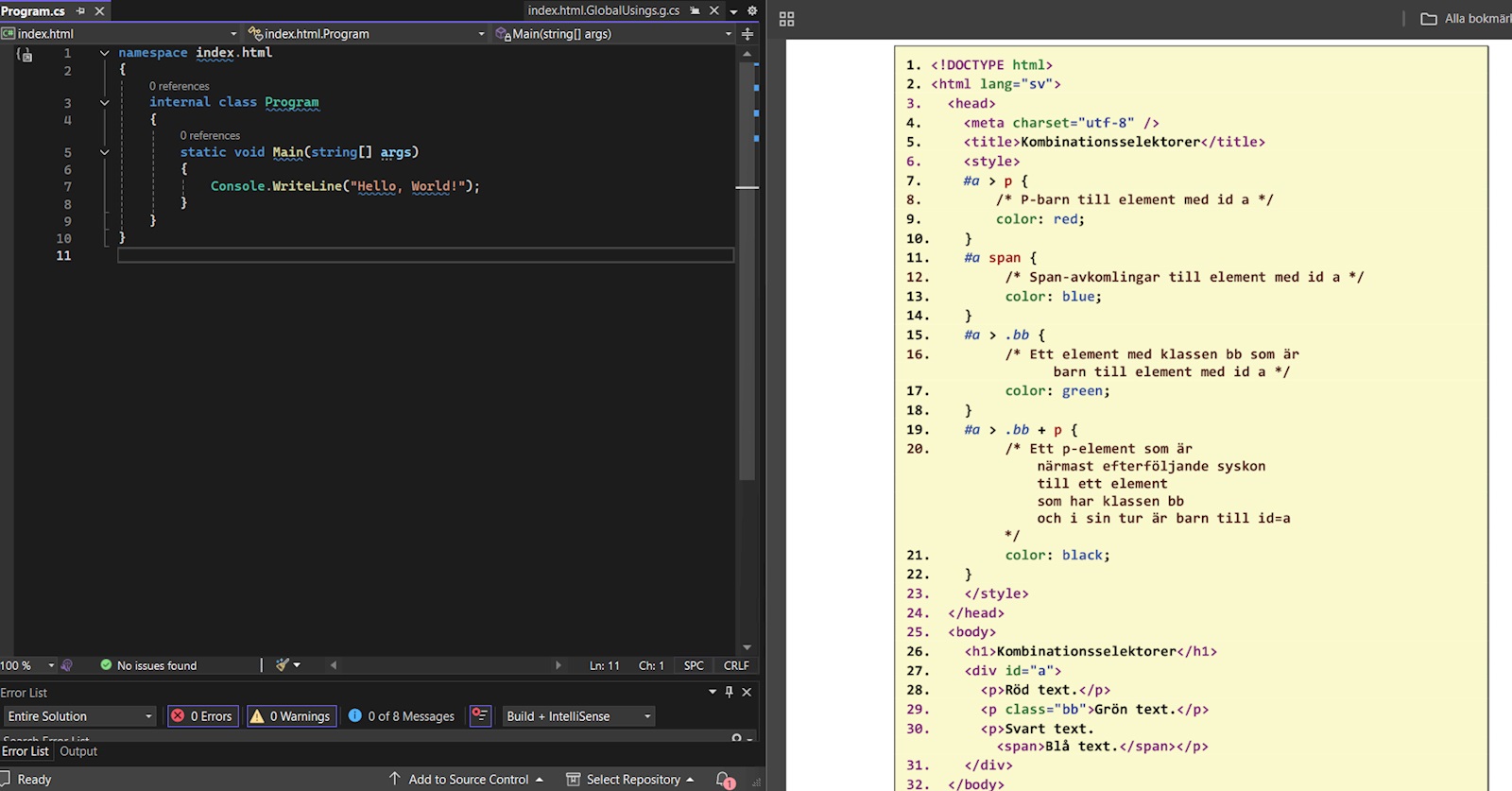 För koden till vänster står inte med i exemplet i höger, ska jag radera allt menas det?