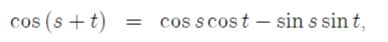 Näst sista raden handlar inte om cos(s+t) = cos(s)cos(t) - sin(s)sin(t)