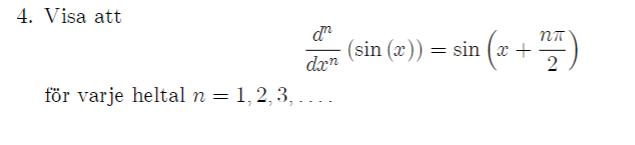 Tyvärr ser jag inte hela uppgiften, men jag håller med: på näst sista raden ska man skriva cos() istället för sin().