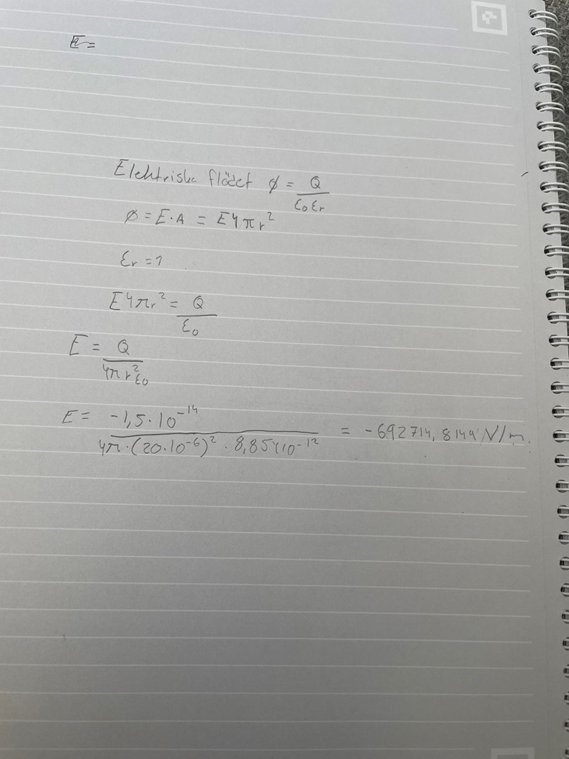 D4NIEL skrev:Svaret på uppgift a) är -340 kV/m i radiell led.