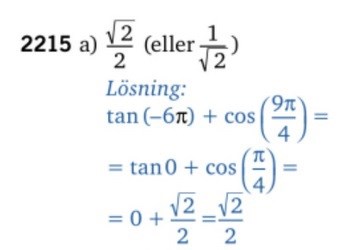 Kom ihåg att cosinus och sinus är periodiska med period , samt att tangens är periodisk med period .
