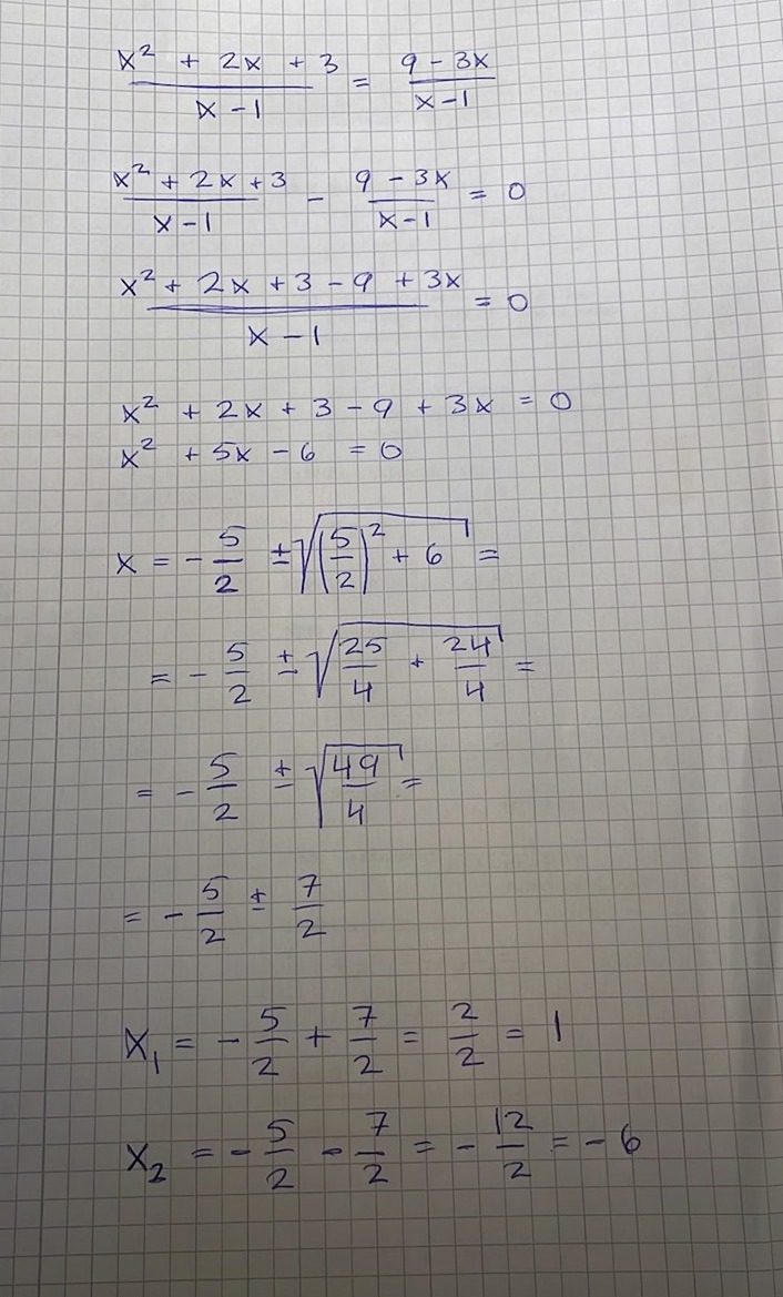Prova genom att sätta in x = 1 i ursprungsekvationen så ser du att nämnarna blir 0. ekvationen är alltså inte definierad för x = 1.