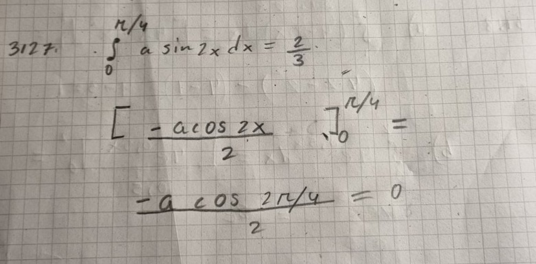 I facit får dem a = 4/3 men det blir ju bara 0 direkt när man gör cos av 0,5 pi