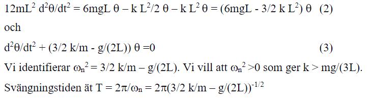 Borde det inte bli wn^2 = k/(8m) - g/(2L) ?