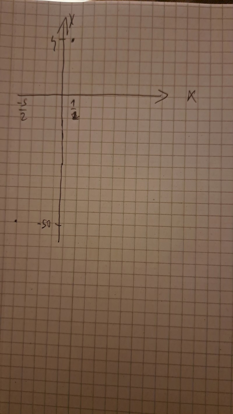 x värdet som ger y=-50 är ju x=-5/2. Jag antar att derivatans nollställen måste uppfylla båda olikheterna i uppgiften och därför förkastar vi väl x=-5/2 ?