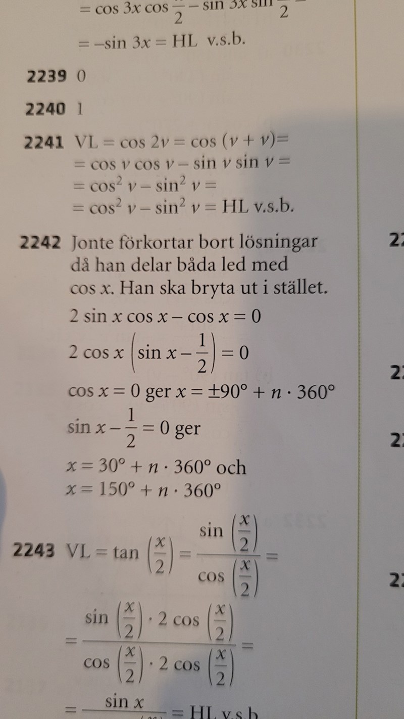 Javisst! Uppgift 2242 är det. Det finns inte med i facit, men ursprungsfrågan är sin2x = cosx