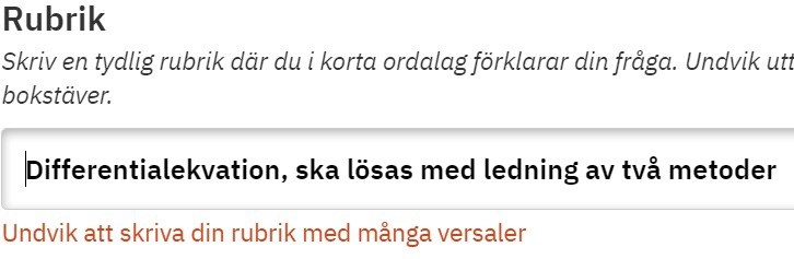 Jag har samma problem och det har inte löst sig för mig än, jag har rubriken "Differentialekvation" och den låter mig endån inte göra inlägget.