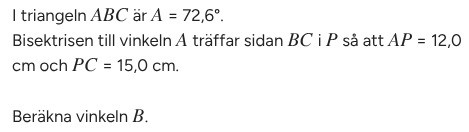 Fick rätt svar nu! Det blev 79.1 grader, i början fick jag 79,4 grader 😅