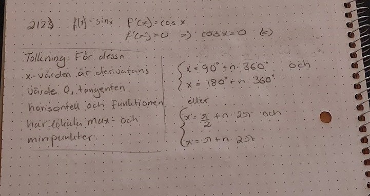 Ja, har perioden . Ett delsteg i denna uppgift är att visa att de två lösningsmänderna kan "slås ihop"/förenklas ned till en lösningsmängd. Jag tänker använda radianer istället för grader, då blir lösningarna och .