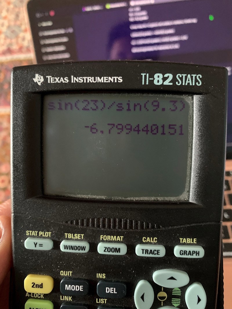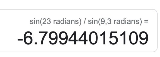 Google räknar ut samma värde: https://www.google.com/search?q=sin(23)%2Fsin(9%2C3)%3D