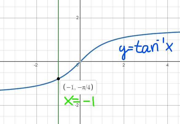 Vad menas med att det ibte är en del av värdemängden? Nedan ser du mitt formelblad där det står att arctan(-1) är 3pi/4 och att arctan(1) är pi/4….